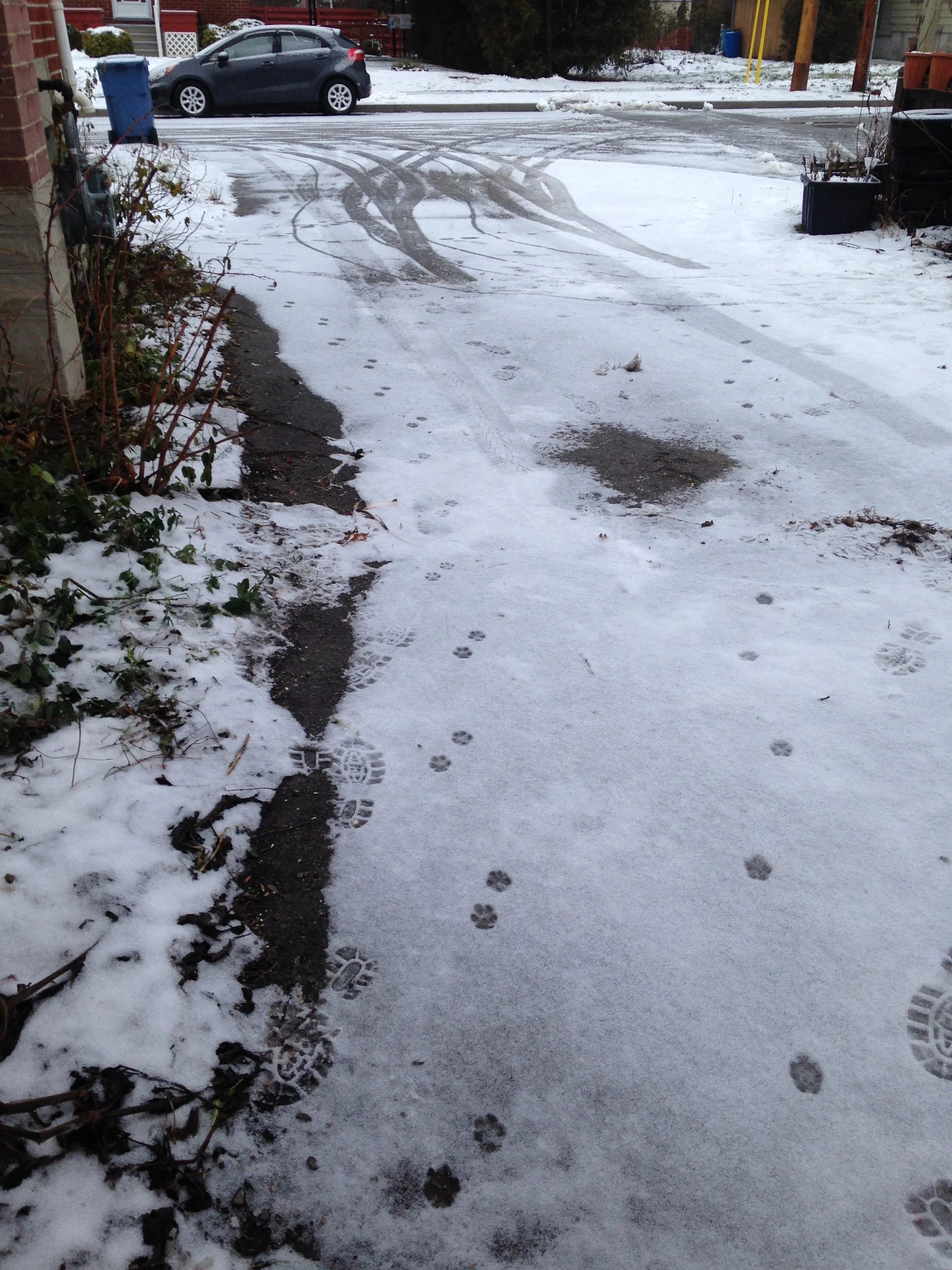 I had stepped outside to take out the recycling when I noticed two canid trails on my driveway. There was one leading towards the back yard, and one heading back out towards the street.
