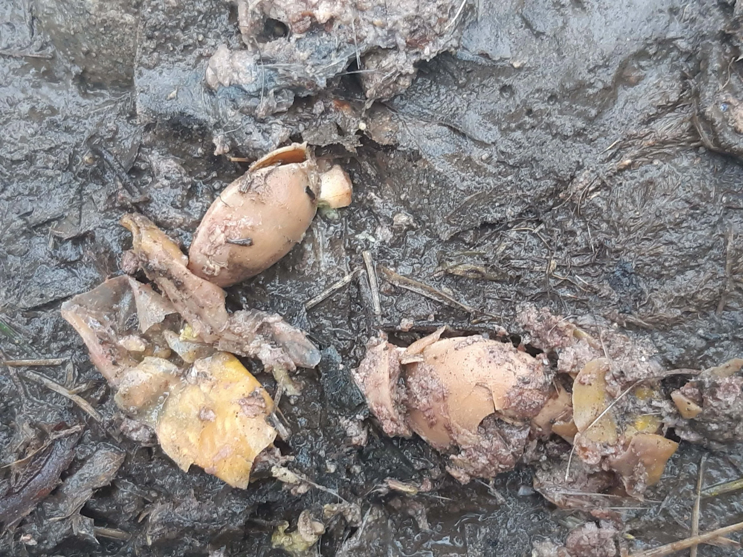 A few years ago I was walking with a friend of mine along the trail towards the forest where I work. Along the way I happened to spot some scat in the middle of the trail. It was tapered and long, fairly fat, and had some seeds in it. The scat appeared to have come from a Coyote (Canis latrans) but I was at a loss as for what kind of plant the seeds had come from. The seeds were quite large, smooth, oblong, and reminded me a three sided football. There was soft yellowy kind of flesh found with the seeds partially digested within the scat. I looked up a couple of books I have which have a few photographs of seeds but never found an image of a seed which looked right. In November 2018, I posted the photos online asking if anyone knew what they were, but got no constructive responses. The mystery haunted me.