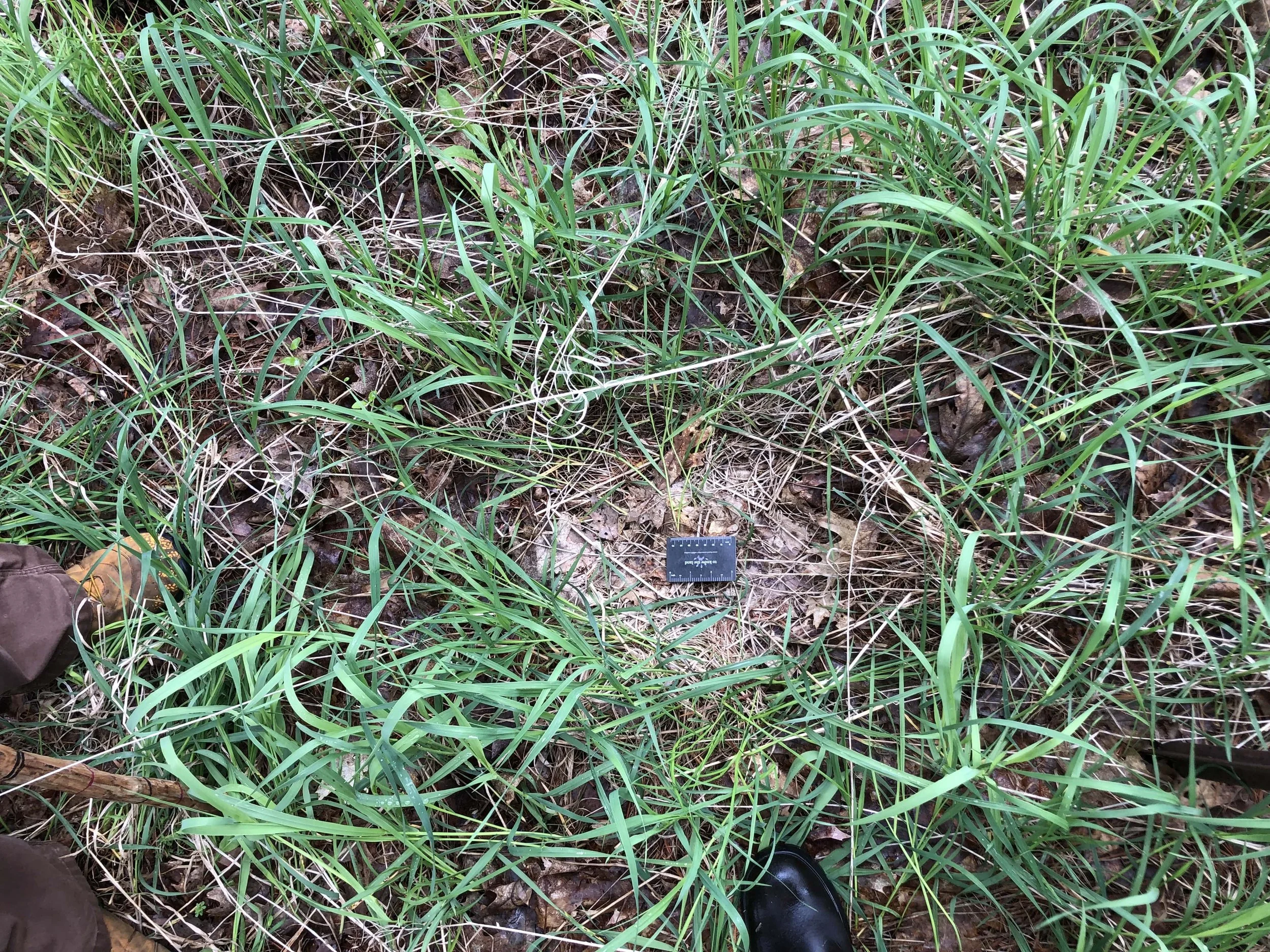 While out at Dunby rd section of the Bruce Trail with the Earth Tracks tracking apprenticeship, I was walking slowly under some White Pines (Pinus strobus) looking for owl pellets. We had found some in that same spot a couple years before and I was hoping to find some again. At one point I lifted my foot to take a step when there was a sudden movement directly under where my foot was about to land. Something large and pale brown jostled about and I quickly called out and stumbled back. It took me half a second to realize that the large pale brown shape that was moving away from me was a White-tailed Deer fawn (Odocoileus virginianus). I started looking around quickly, out to my tracking companions and rapidly back to the fawn. I was awestruck and needed to see if anyone else had seen the fawn. Eventually someone else saw the young deer and we managed to get everyone’s attention. Some folks even crept up to the fawn’s new hiding spot and got a couple photos. I tried climbing a nearby tree in hopes to get a better view without disturbing the newborn, but the young deer took off through a fence and up a hill by the time I was stable enough in the tree to turn around.