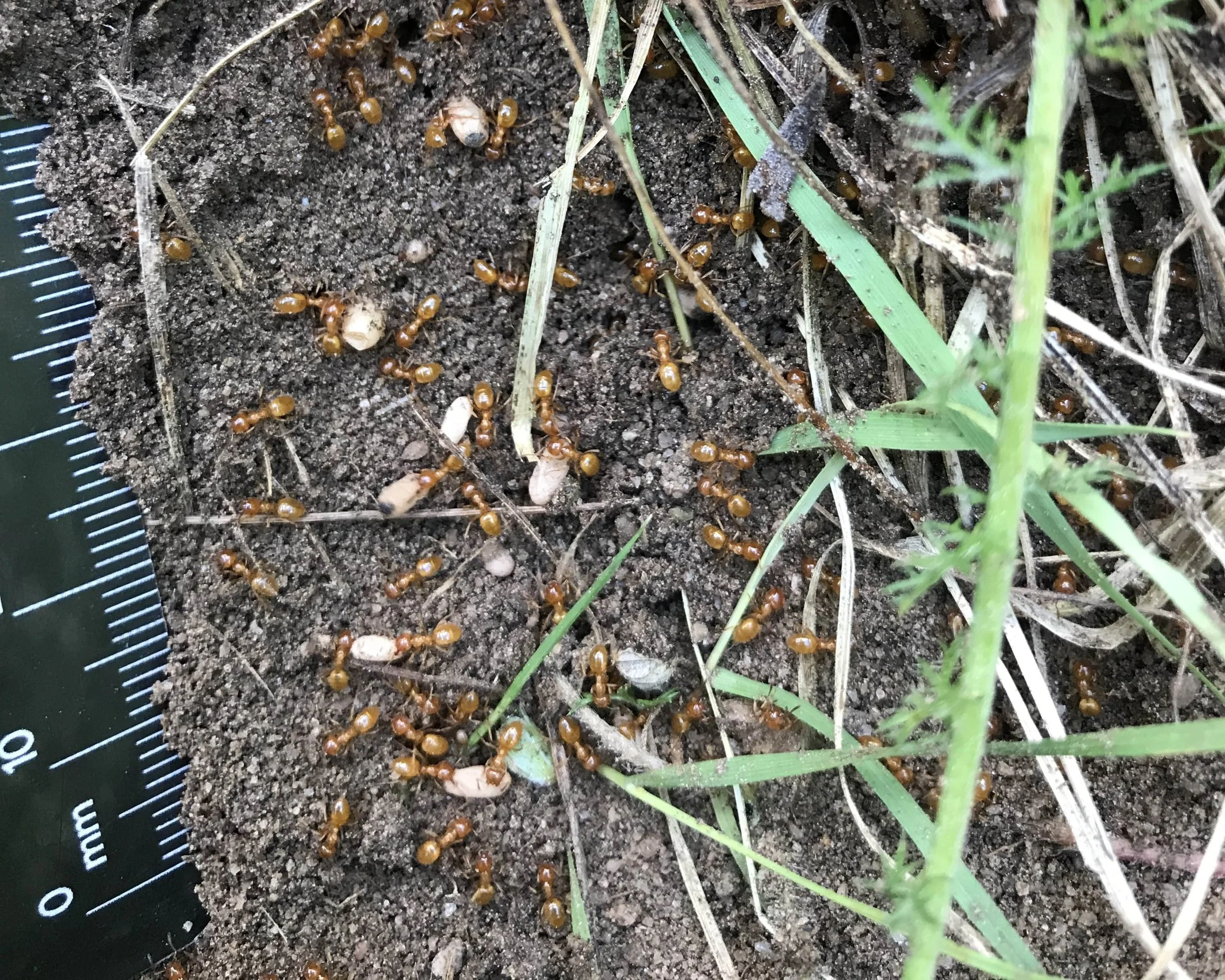 These citronella ants are likely Lasius claviger, also known as the Common Citronella Ant or The Smaller Yellow Ant. Genus Lasius was formerly known as the genus Acanthomyops. The “claviger” part of the name comes from “clavi”, which translates to “club” referencing their club-like antennae (“clavi” also informs the word “clover” to describe the common wildflowers in the Pea family). I have been known to eat a couple everytime I encounter them. I mentioned this to some of the folks present and a couple people tried tasting an ant. They are potently aromatic, with a citrusy, lemon verbena odour and taste which is quite pleasing. But I have never really known what causes this odour, and how the ants produce it. So I decided to look it up.
