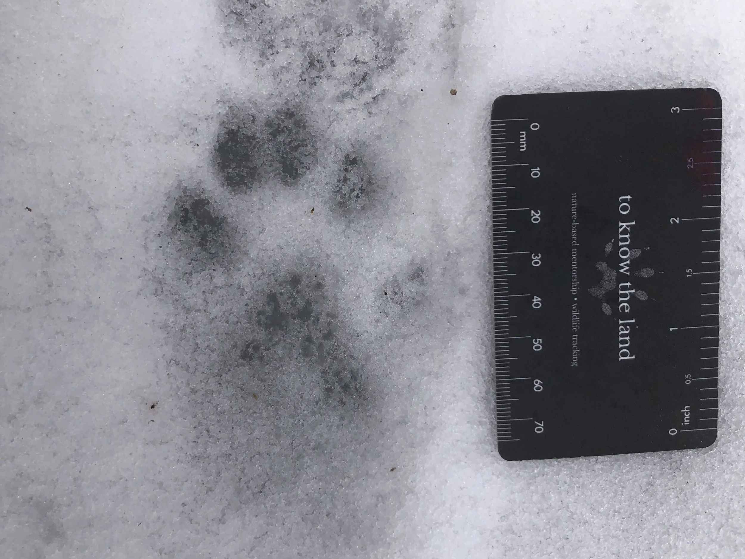 The tracks seemed a little off, but it was been a warmer day and I initially thought that the variation in the track might be due to melt, or perhaps a double register. But when I stopped and looked a little deeper, I began seeing that the toe impression closest to the midline of the trail was in the right place for a toe 1 on a mustelid. I dropped the possibility of a Coyote and I quickly considered Fisher (Pekania pennanti) because they have been showing up more and more in my area.